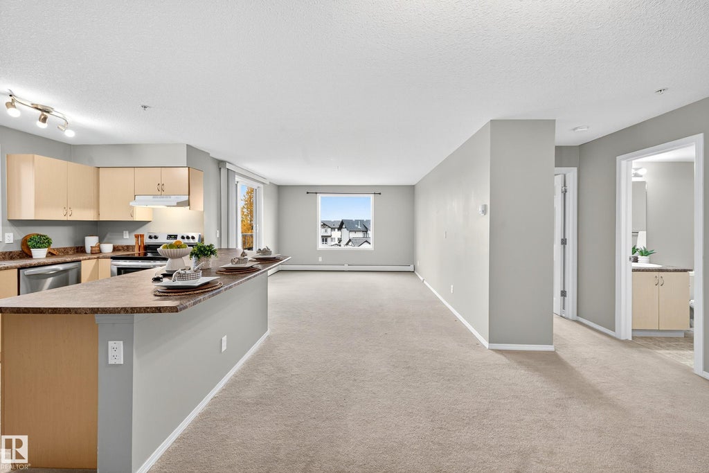 Welcome to Axxess PLUS @ Summerwood in the heart of Sherwood Park where this splendid 2-bedroom, 2-bathroom corner condo unit is ready to welcome its new owners. Fantastic location with all amenities just a hop away; shopping, hospital, schools, cafes, medical center, Emerald Hills Centre, Summerwood Park, PLUS so much more. You will LOVE the abundance of large windows that brings in array of natural light throughout. Great open concept layout with neutral tonnes aimed to please. Entertaining peninsula style eat-on countertop anchors spacious kitchen that overlooks living room with large west facing balcony (BBQ gas line). Primary suite has private walk-thru WIC to ensuite. Spacious foyer, in-suite laundry, lots of storage space, appliances, abundance of kitchen cabinetry, professionaly cleaned carpets, reasonable condo fees in well maintained complex makes this opportunity a GEM purchase. Fantastic for 1st time buyers or investors. Don’t let this one slip away…MUST SEE!